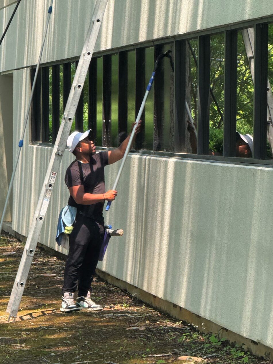 - Safe handling of hard-to-reach windows. Second-story dormers, skylights over stairwells, atrium transoms, and basement egress glass all get the same white-glove treatment. We use ladders, extension poles, and safety harnesses to reach the glass securely while protecting your siding, gutters, and landscaping.